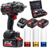 Akku Schlagschrauber 550N.m, 1/2 Zoll Akku Drehschlagschrauber mit Akku 4.0Ah-Schnellladung, hohes Drehmoment, 3400RPM, 3-in-1-Schlagschrauber mit LED Licht 4 Stecknüsse, 12Bohrer, für Haus und Auto