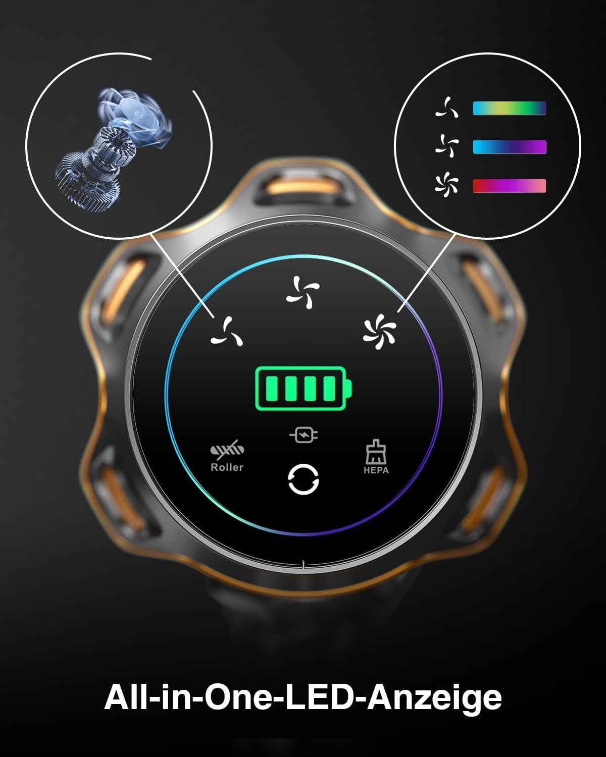 Aus unserer Erfahrung ist die V-förmige Anti-Tangle-Bürste das Highlight für Haushalte mit Haustieren. Die Konstruktion mit integrierten Kammzähnen führt Haare beim Saugen automatisch zur Mitte, wo sie direkt eingesaugt werden – statt sich um die Walze zu wickeln. Unser Team hat getestet: Selbst nach mehrwöchiger Nutzung in einem Haushalt mit zwei Langhaarhunden mussten die Bürsten deutlich seltener manuell gereinigt werden als bei herkömmlichen Saugern. Die 270° drehbare Bodenbürste mit integriertem LED-Frontlicht erreicht Bereiche unter Sofas und Betten mühelos, ohne dass man sich bücken muss.