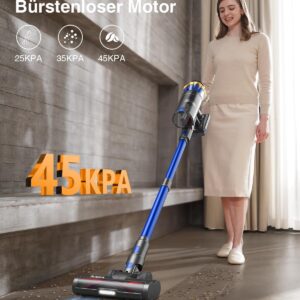 Der Bulelink Akku Staubsauger kombiniert einen bürstenlosen 550-Watt-Motor mit einer Saugleistung von 45 kPa, was ihn zu einem der leistungsstärksten Akkusauger im Preissegment unter 150 Euro macht. Der bürstenlose Motor arbeitet deutlich effizienter als herkömmliche Motoren, was sich direkt in der beeindruckenden Akkulaufzeit von 65 Minuten niederschlägt. In der niedrigsten Stufe reicht diese Laufzeit für die komplette Reinigung von Wohnungen bis 150 m², während die Maximalstufe etwa 15 Minuten für hartnäckige Verschmutzungen bereithält. Das Schnellladesystem benötigt 4 Stunden für eine Vollladung und kann bequem über die mitgelieferte Wandladestation erfolgen.