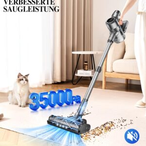 Der Syntecno Akku Staubsauger Kabellos kombiniert leistungsstarke Technik mit praktischer Handhabung für den Alltag. Das Herzstück bildet der 350-Watt-Motor, der eine Saugkraft von 35.000 Pa erzeugt – ausreichend für die meisten Haushaltsaufgaben von oberflächlichem Staub bis zu tief sitzendem Schmutz in Teppichfasern. Im Vergleich zu kabelgebundenen Staubsaugern bietet das Gerät volle Bewegungsfreiheit, ohne dass du ständig die Steckdose wechseln oder über Kabel stolpern musst.