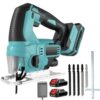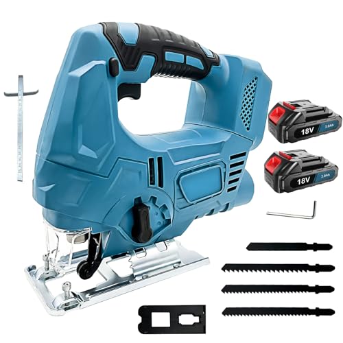 Akku Stichsäge 18V, 3000 SPM Stichsäge mit LED-Licht, Bürstenloser Stichsäge, 4 Orbitaleinstellungen, 4 Klingen, 2x 3,0Ah-Akku und Ladegerät