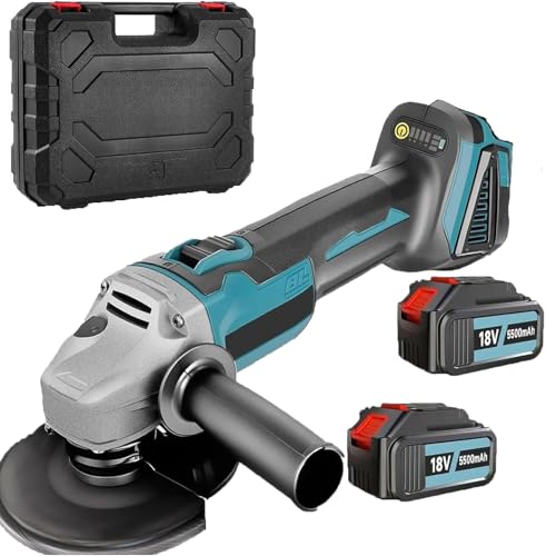 Akku Winkelschleifer Ø125mm 8500 U/min für 18V Makita Akkus - Bürstenloser Motor, Akku Flex Trennschleifer Zum Schneiden, Schleifen, Polieren(2x5500mAh Akku)