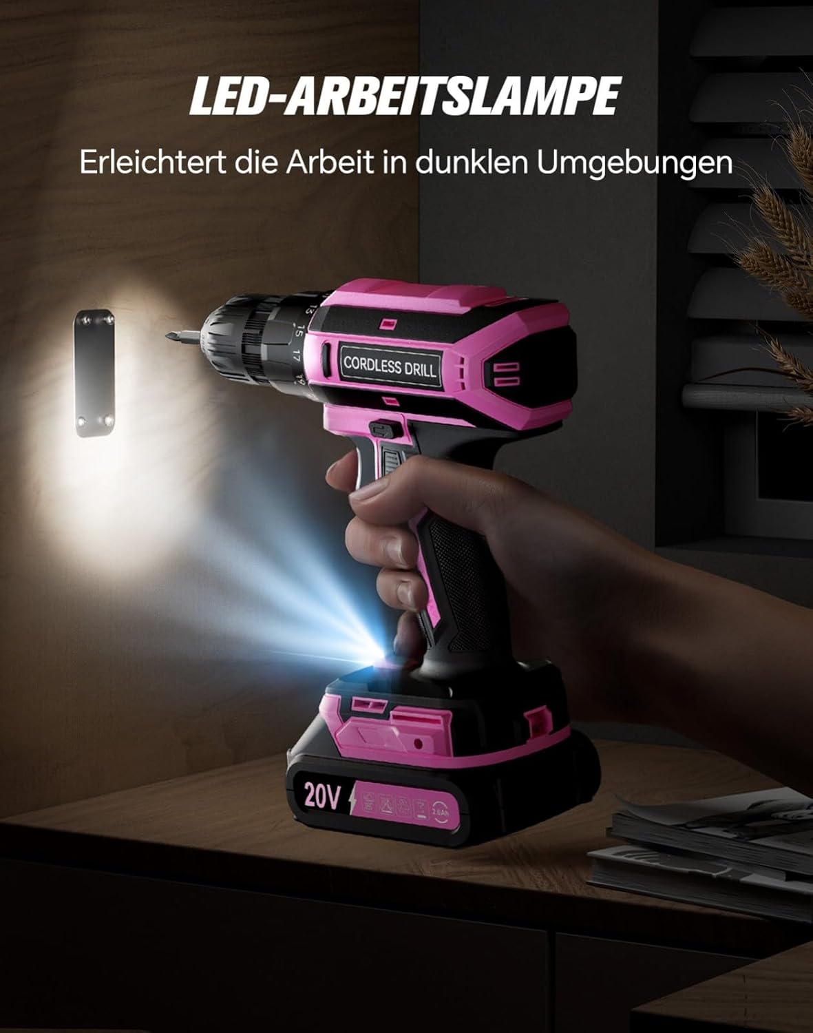 Das rosa Design ist bewusste Produktdifferenzierung und funktioniert als Wiedererkennungsmerkmal. Wer neutralere Farben bevorzugt, findet in unserer Akkuschrauber-Kategorie weitere Optionen in klassischen Farben.