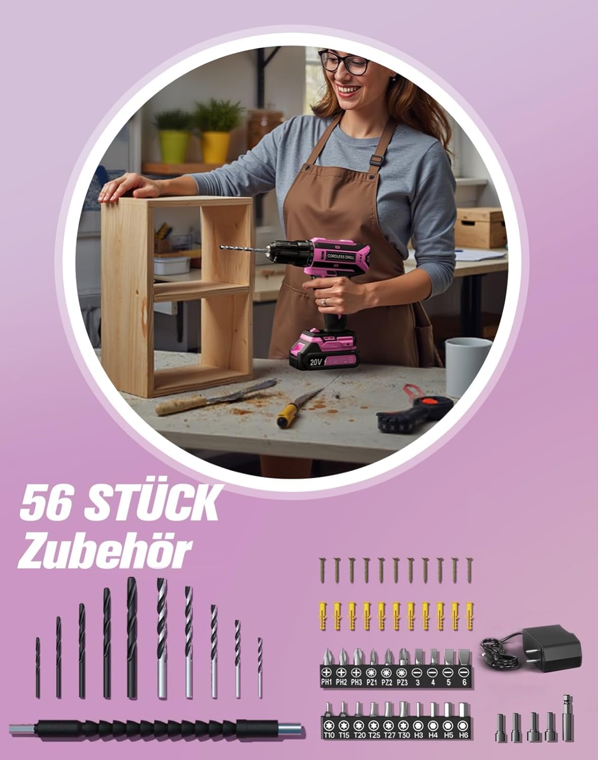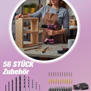 - Komplettpaket zum sofortigen Start: Mit 56 Teilen inklusive Bits, Bohrern, Dübeln und Schrauben kannst du direkt loslegen, ohne zusätzliches Zubehör kaufen zu müssen