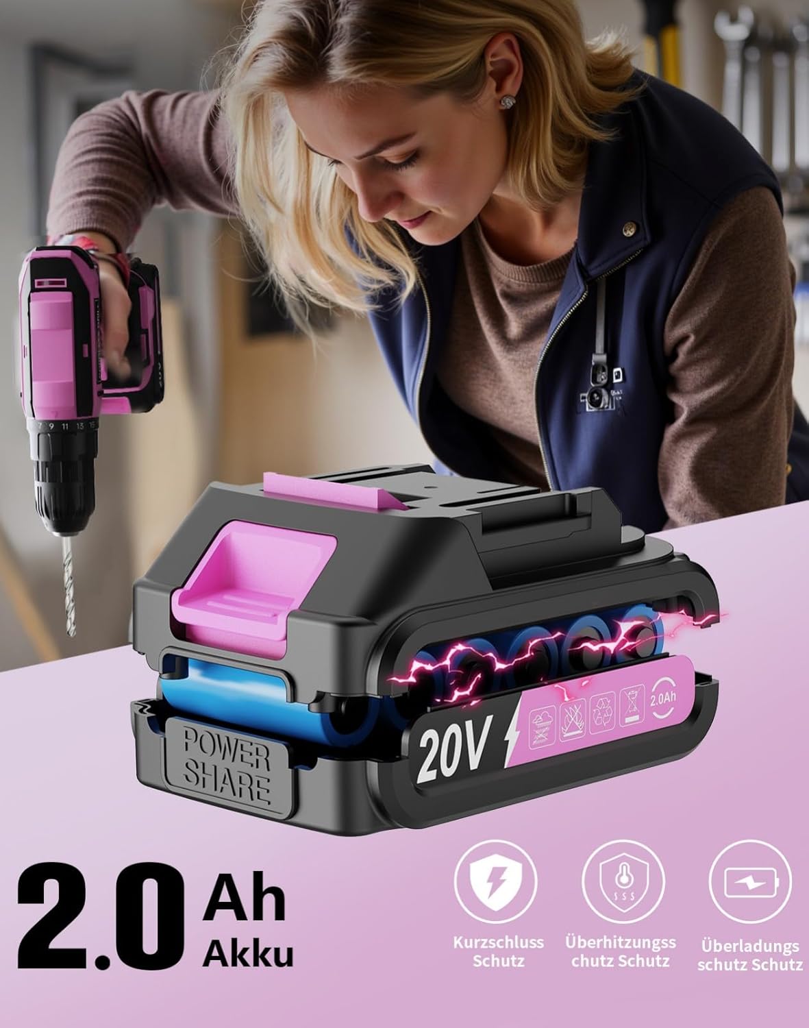- Rosa Design als Erkennungsmerkmal: Dein Werkzeug hebt sich farblich ab – praktisch auf Baustellen oder in gemeinsam genutzten Werkstätten