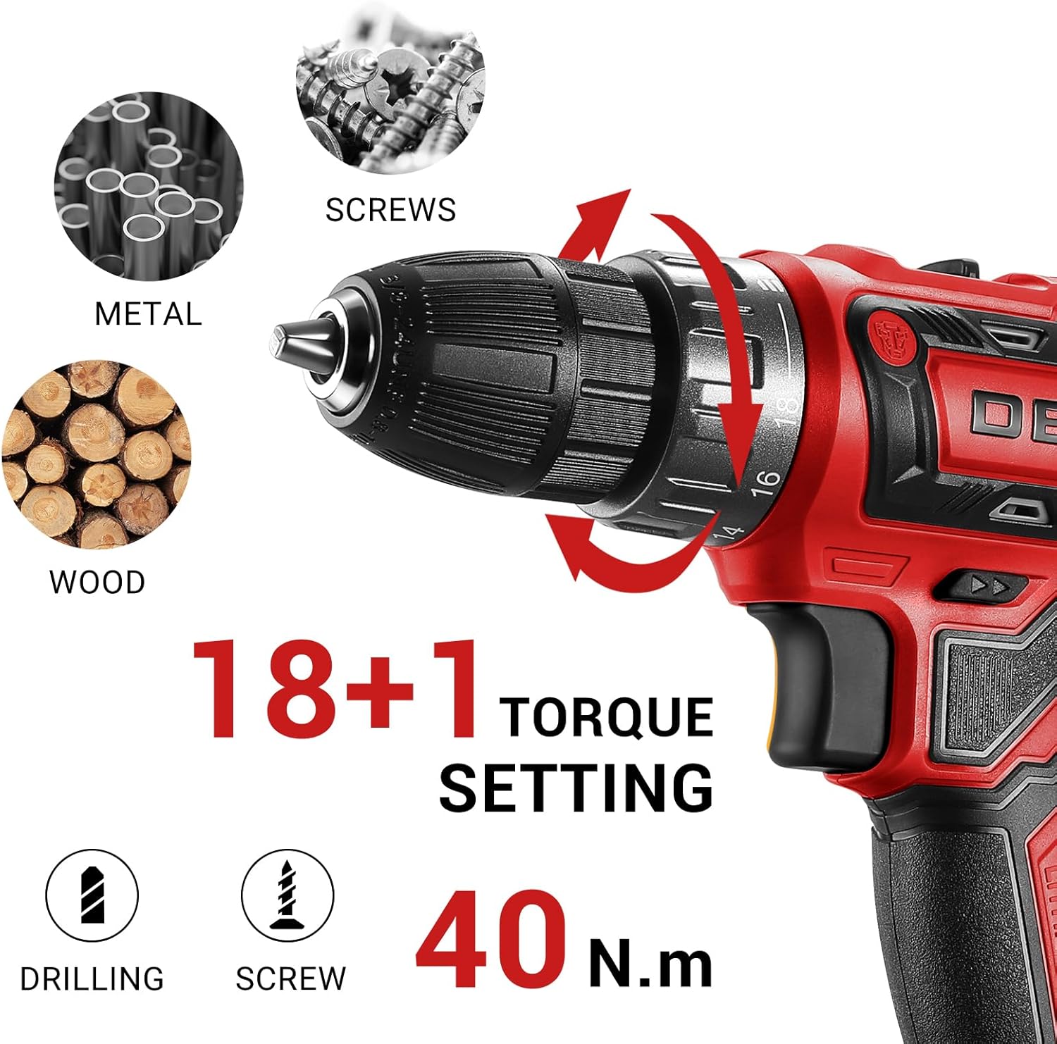 - Vielseitige Leistung: Dank der 18+1 Drehmomentstufen passt du die Kraft exakt an das Material und die Schraubgröße an, um Materialbeschädigungen zu vermeiden.