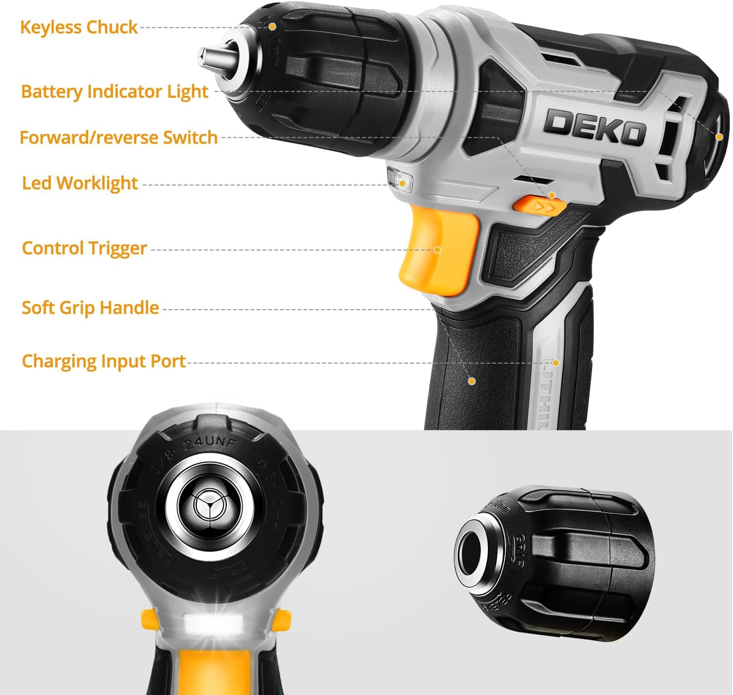 Der DEKOPRO 8V Akkuschrauber mit 42-teiligem Zubehörset richtet sich an Heimwerker und Hobby-Handwerker, die ein kompaktes Werkzeug für leichte Montage- und Reparaturarbeiten im Haushalt suchen. Mit 12Nm Drehmoment und 800 U/min Leerlaufgeschwindigkeit liefert er ausreichend Leistung für Holz- und Kunststoffbearbeitung sowie Schraubarbeiten. Das Set bietet ein komplettes Einsteigerpaket zu einem attraktiven Preis-Leistungs-Verhältnis für gelegentliche Einsätze.