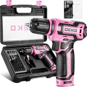 1 Rezension für Akkuschrauber klein Bohrschrauber:DEKOPRO 12V 13tlg Zubehör Schlagbohrschrauber Drehzahl Einstellbar Bohrer LED – Bohren Schrauben Rosa für Frauen Haus Reparatur