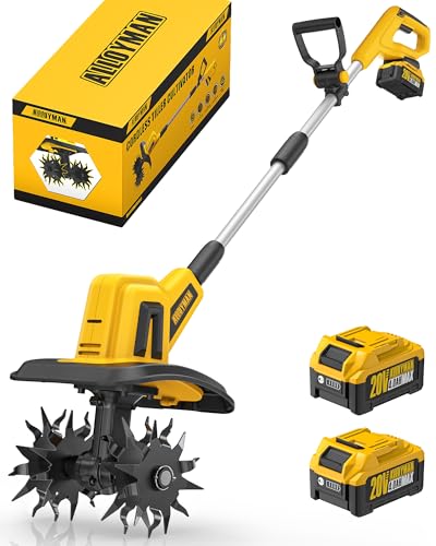 Alloyman 20V MAX Elektro Motorhacke Gartenfräse, 360 U/min Akku Bodenhacke, mit 2 x 4,0 Ah Akkus und Ladegerät, 23 cm Arbeitsbreite, 17 cm Tiefe, Gartenfräse für Rasen/Garten/Bodenbearbeitung