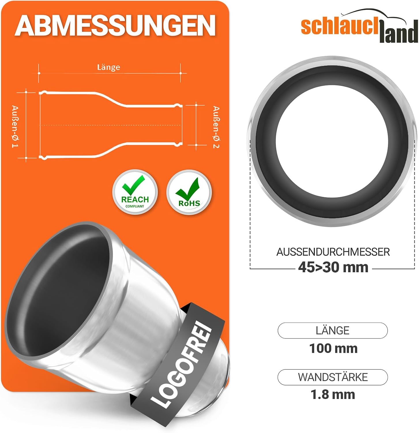 ALU-ROHR Reduzierstück AD-Ø 45-30mm Reduzierer poliert | VIELE GRÖSSEN | Reduzierung Aluminium Rohr Motor KFZ LLK Turbo Kühler Schlauch-Verbinder Adapter Kupplung – 300°C DIN 40501 & EN AW-6063
