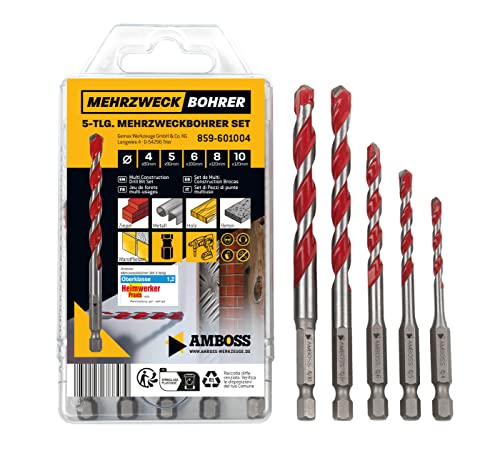 Amboss Mehrzweck Bohrer Set Multifunktionsbohrer Multibohrer 5teilig Ø 4,5,6,8,10 mm | für Holz, Bleche, Gipskarton, (Edel-) Stahl, Mauerwerk uvm. | für Bohrmaschinen/Akkuschrauber Amboss Mehrzweck Bohrer Set Multifunktionsbohrer Multibohrer 5teilig Ø 4,5,6,8,10 mm | für Holz, Bleche, Gipskarton, (Edel-) Stahl, Mauerwerk uvm. | für Bohrmaschinen/Akkuschrauber