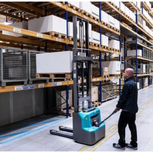 • Vollelektrisches Arbeiten: Heben, Senken und Fahren erfolgen komplett elektrisch, wodurch die körperliche Belastung bei wiederkehrenden Palettentransporten auf ein Minimum reduziert wird.