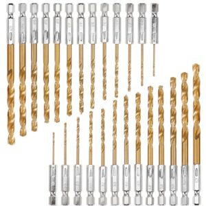 ANBOO Titan Bohrerset, 26 teiliges 1,5-6,5 mm Sechskantschaft Schnellbohrkronen, Schnellarbeitsstahl Titan-beschichteter HSS Bohrersatz, Schnellwechsel, 1/4 "Sechskantschaft