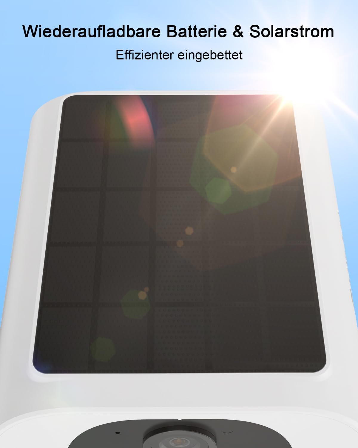 - Reinigung: Wische das Objektiv und das Solarpanel alle zwei bis drei Monate mit einem trockenen, fusselfreien Tuch ab, um Staub oder Ablagerungen zu entfernen.