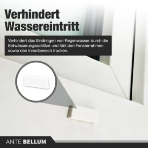 Unser Team hat getestet, wie sich die Kappen bei verschiedenen Witterungsbedingungen verhalten. Aus unserer Erfahrung zeigt sich, dass der feste Sitz der Ante Bellum Fenster-Entwässeru das Risiko minimiert, dass die Kappen bei starkem Wind herausgedrückt werden. Die kompakte Bauweise sorgt zudem dafür, dass sie bündig mit dem Fensterrahmen abschließen, was die Reinigung mit einem Fenstersauger oder Tuch nicht behindert.