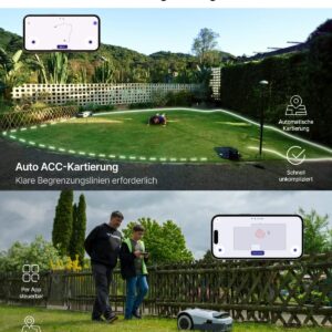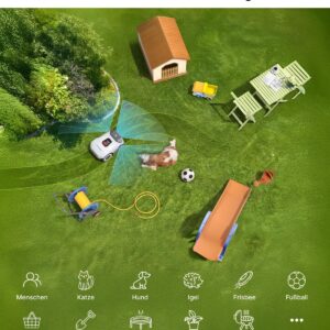- KI-basierte Hinderniserkennung: Das System erkennt Objekte, Spielzeuge und Bäume in Echtzeit, was Kollisionen minimiert und die Sicherheit für Haustiere und Kinder erhöht.