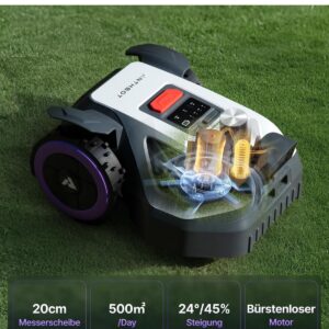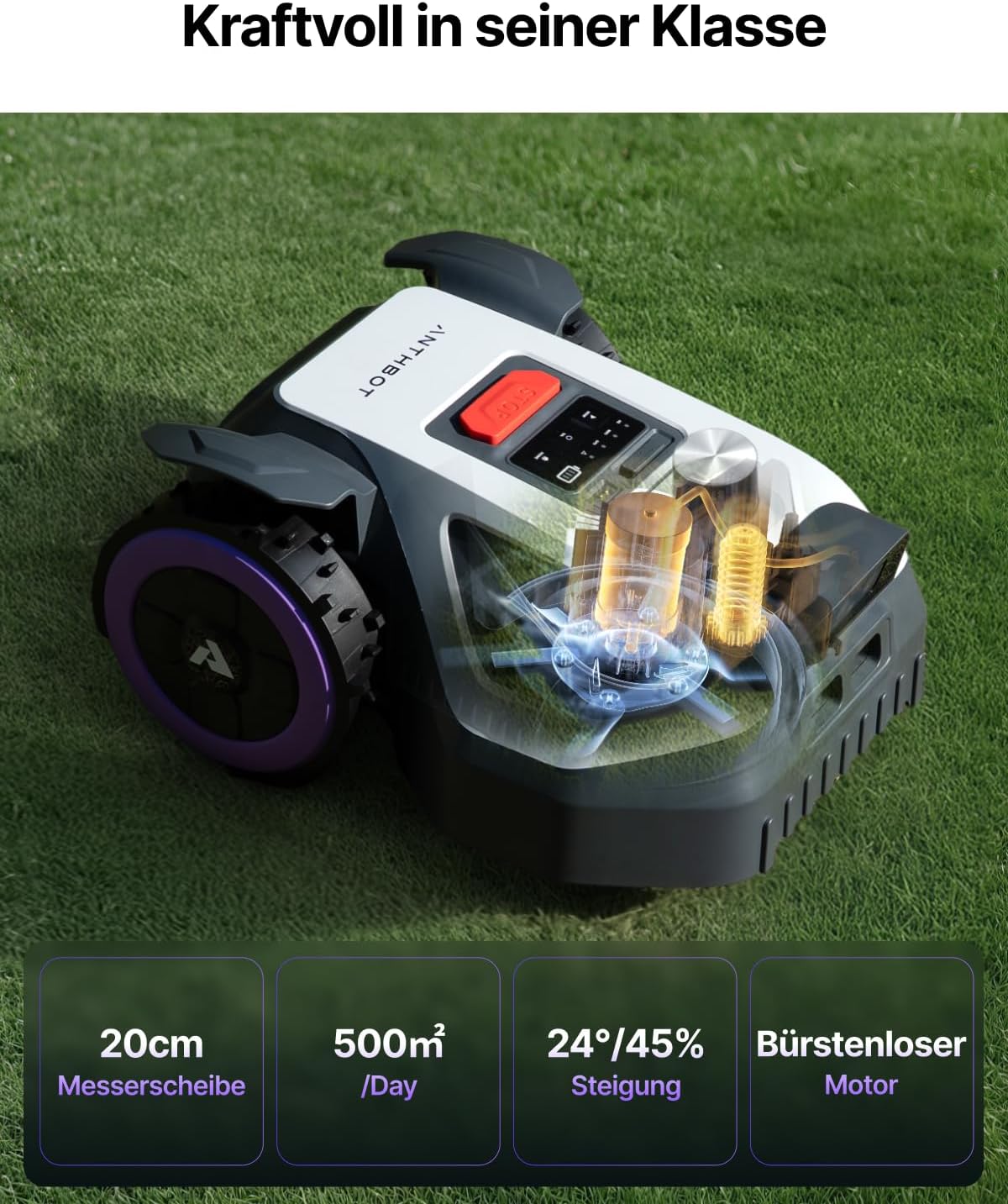 - Reinigung: Dank IPX6 kannst du grobe Grasreste einfach mit einem moderaten Wasserstrahl entfernen – aber bitte keinen Hochdruckreiniger an den empfindlichen Sensoren verwenden.