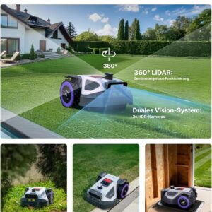 - Präzise 360°-Kartierung: Dank LiDAR-Technik navigiert der M5 auch unter Baumkronen oder an Mauern sicher, wo GPS-basierte Systeme oft aussteigen.