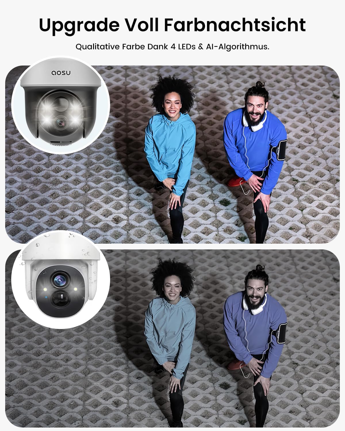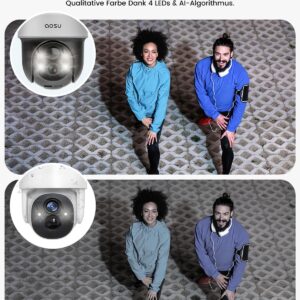 - Sicherheit bei Nacht: Durch die hochsensible Farb-Nachtsicht mit vier LEDs erkennst du auch bei völliger Dunkelheit kritische Ereignisse in Farbe, statt auf körnige Schwarz-Weiß-Aufnahmen angewiesen zu sein.
