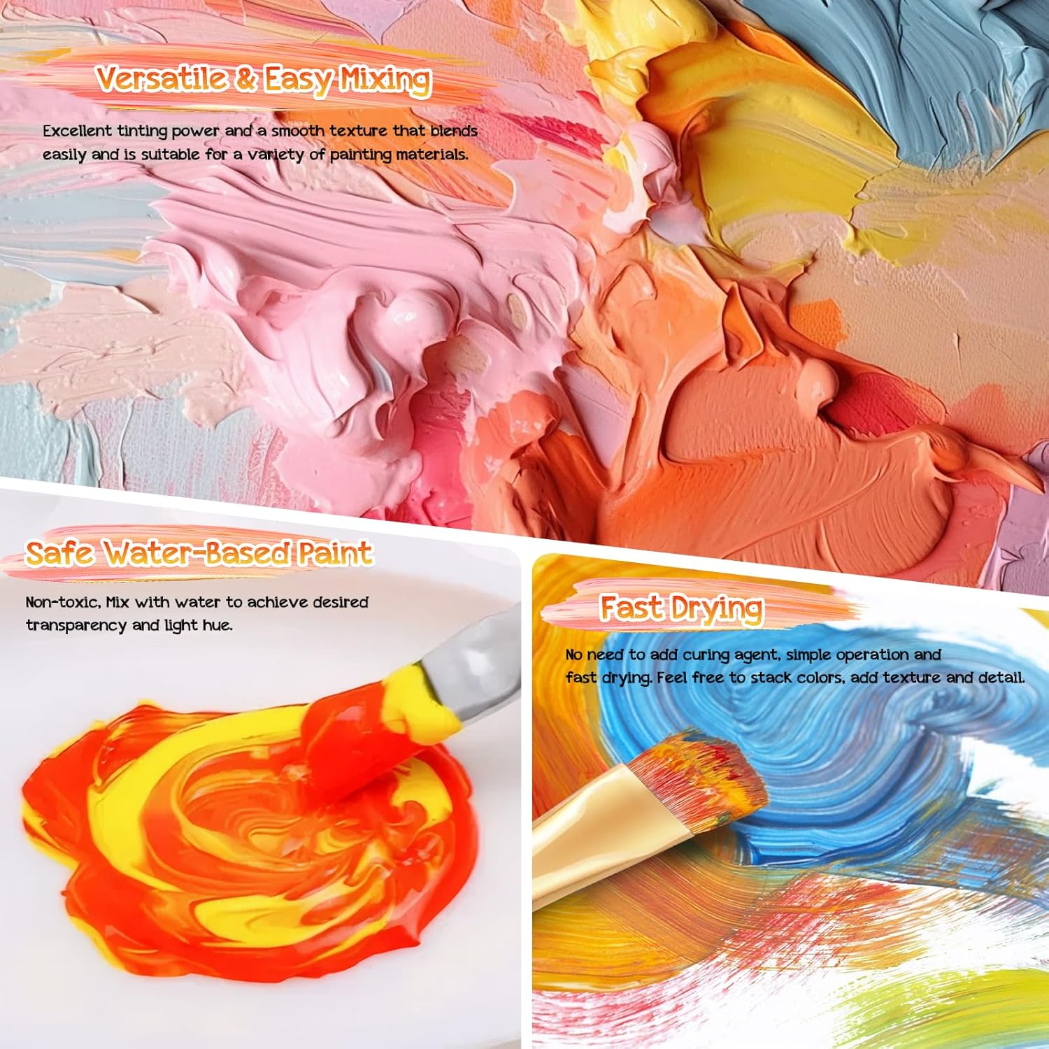 - Alles-in-einem-Set: Enthält 24 Tuben Acrylfarbe, 5 Pinsel, 2 Leinwände, eine Mischpalette und ein Mischmesser für den sofortigen Start.