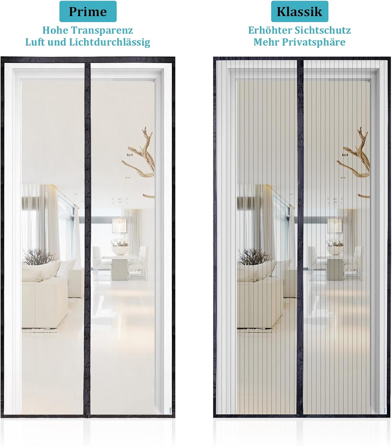 Ja, das verwendete Prime-Gewebe ist speziell darauf ausgelegt, eine klare Sicht und eine stetige Zufuhr von frischer Luft zu ermöglichen. Trotz der hohen Durchlässigkeit bleiben Insekten zuverlässig draußen, was es ideal für Balkon- und Terrassentüren macht.