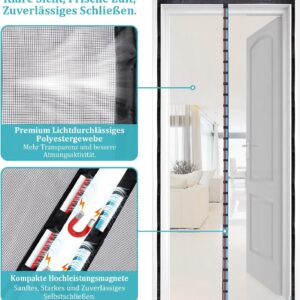 Das Produkt ist vielseitig einsetzbar und eignet sich hervorragend für Standard-Balkontüren sowie Terrassentüren. Durch das hochwertige Gewebe bietet es einen langlebigen Schutz vor Insekten, ohne den Zugang zur Terrasse oder zum Balkon einzuschränken.