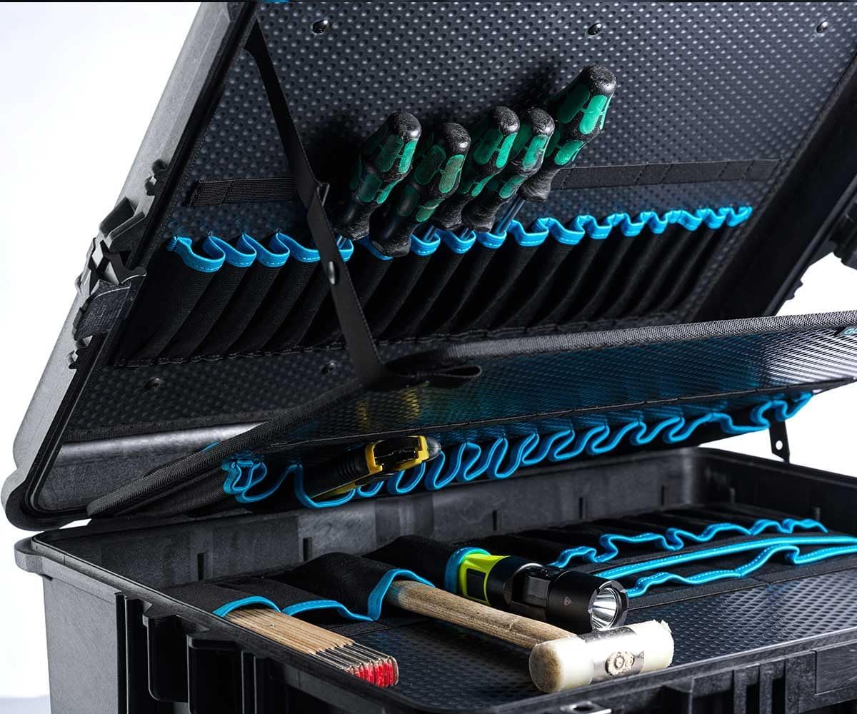 • AUSTAUSCHBARE ELEMENTE – Die Werkzeugpaletten lassen sich bei Bedarf leicht ersetzen. So bleibt Ihr Koffer stets anpassbar und flexibel einsetzbar – auch bei sich ändernden Anforderungen.