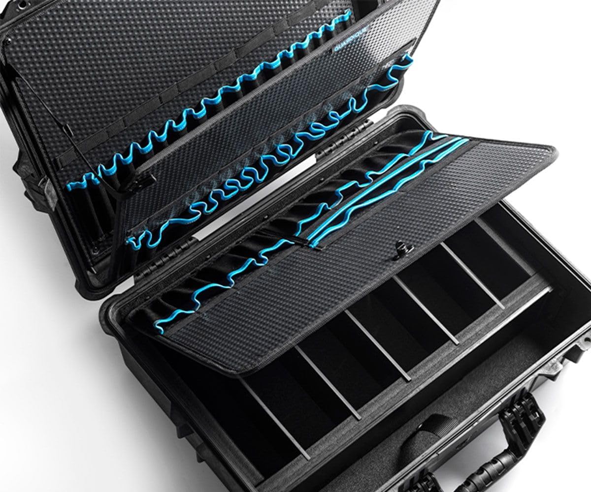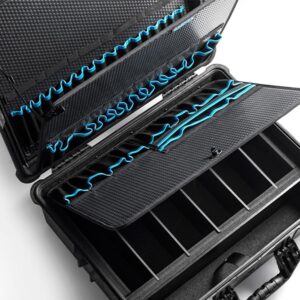 • FLEXIBLE FÄCHER – Der Kofferboden verfügt über ein längliches Fach sowie 6 kleinere Fächer mit verstellbaren Birkenholzplatten – ideal zur individuellen Anpassung an Ihr Equipment.