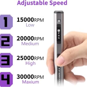 - Variable Geschwindigkeit: Mit 4 Leistungsstufen von 10.000 bis 30.000 U/min passt du die Drehzahl präzise an jedes Material an – von weichem Holz bis hartem Stahl