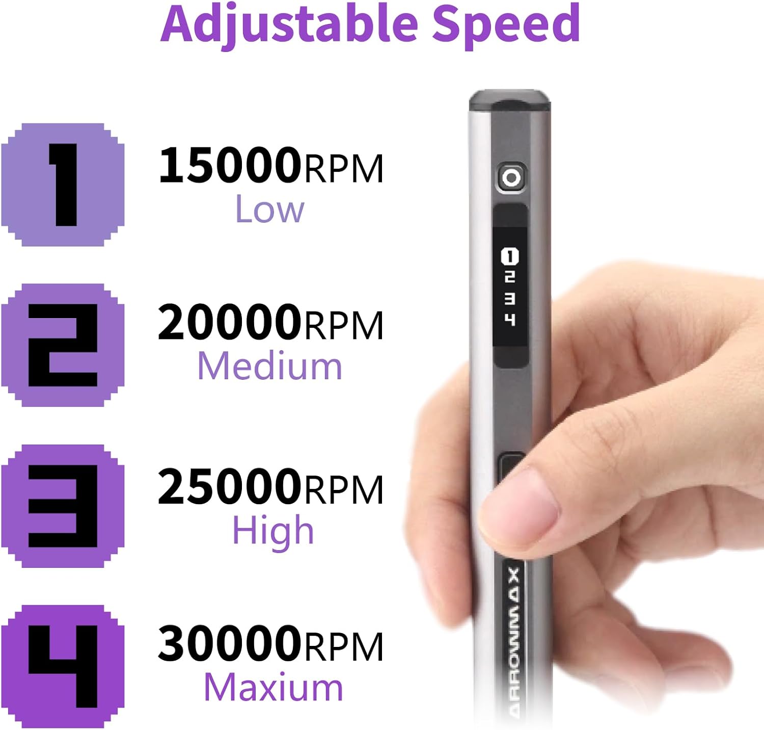 Der ARROWMAX Mini Gravierstift ist ein kabelloses Präzisionswerkzeug für Künstler, Heimwerker und Hobbybastler, die Metall, Holz, Glas und über 50 weitere Materialien personalisieren möchten. Mit 4 Geschwindigkeitsstufen (10.000-30.000 U/min) und 30 mitgelieferten Bits ermöglicht das Werkzeug präzise Gravuren, Beschriftungen und Verzierungen für private und gewerbliche Anwendungen. Dank USB-C-Schnellladung und kompakter Bauweise ist der Gravierstift sowohl in der Werkstatt als auch unterwegs einsetzbar.