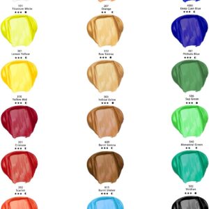 Das Set von Artecho besteht aus 18 Tuben mit jeweils 36 ml Inhalt. Sie erhalten eine Auswahl an leuchtenden Farben, die für ihre hohe Pigmentierung und ihre cremige Beschaffenheit bekannt sind.
