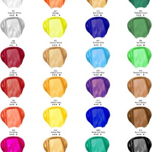 Das Set beinhaltet 24 verschiedene Farbtöne in handlichen 59 ml Tuben. Diese Auswahl ermöglicht eine große Vielfalt bei der Gestaltung Ihrer Kunstwerke.
