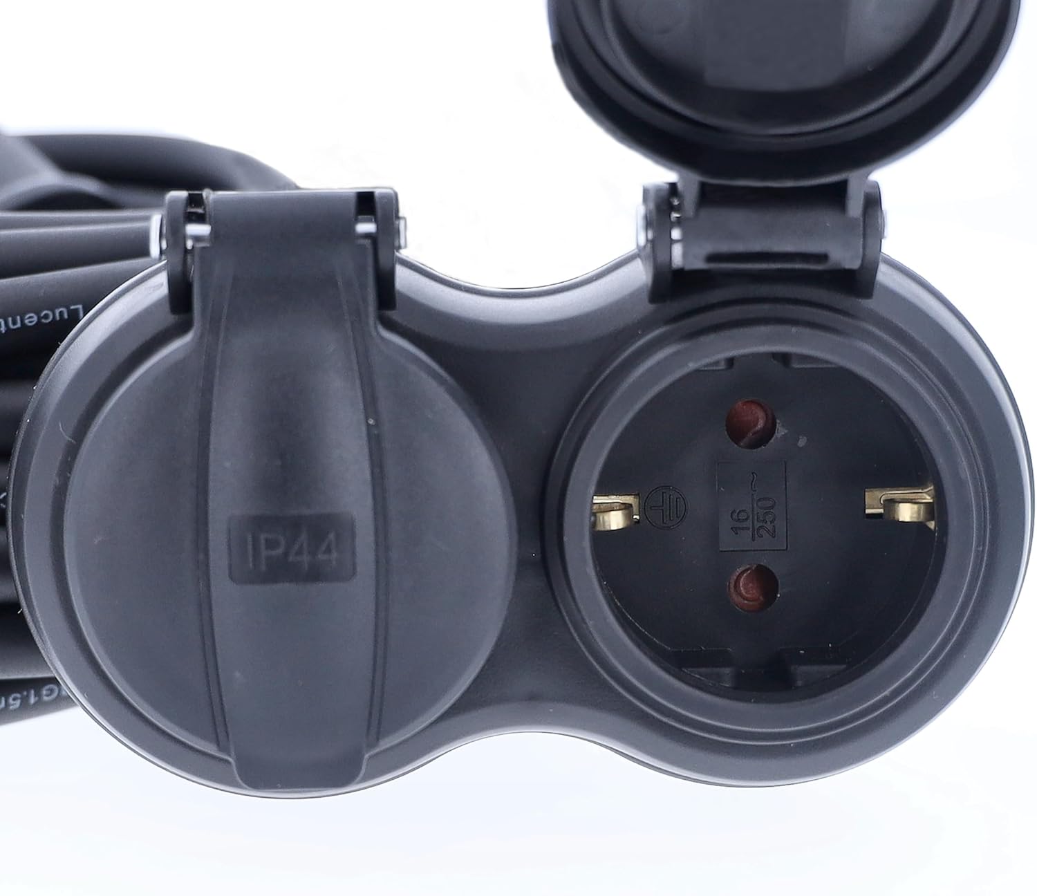 - IP44-Schutzklasse: Durch die integrierten Klappdeckel sind die Steckdosen vor Spritzwasser und Fremdkörpern geschützt, ideal für den Einsatz bei Regen oder in staubigen Umgebungen.
