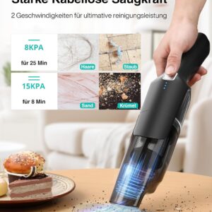 Der Handstaubsauger ist auf eine kraftvolle Reinigungsleistung ausgelegt, um Schmutz im Wohnbereich effektiv zu beseitigen. Auch wenn keine detaillierten technischen Spezifikationen vorliegen, unterstreicht die exzellente Bewertung von 4,9 Sternen die hohe Zufriedenheit der Nutzer mit der Reinigungsleistung. Er eignet sich dadurch hervorragend für die schnelle Reinigung zwischendurch auf unterschiedlichen Oberflächen.