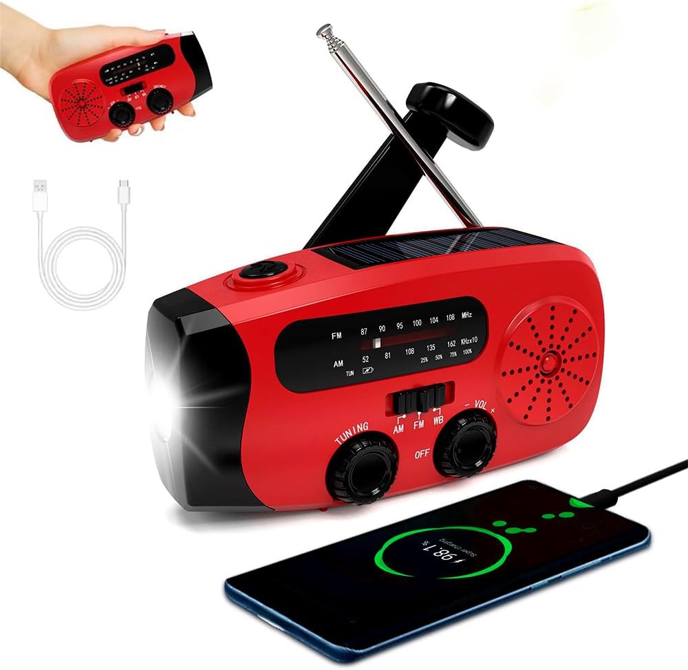 - 【Vier zuverlässige Stromquellen】Verwenden Sie vier multifunktionale Ladeoptionen: USB, Kurbel, Solarpanel und Standard-AA-Batterie (nicht im Lieferumfang enthalten). Egal, ob Sie wandern, campen oder sich einem Notfall stellen, dieses Notfallradio sorgt dafür, dass Sie mit Strom versorgt bleiben.