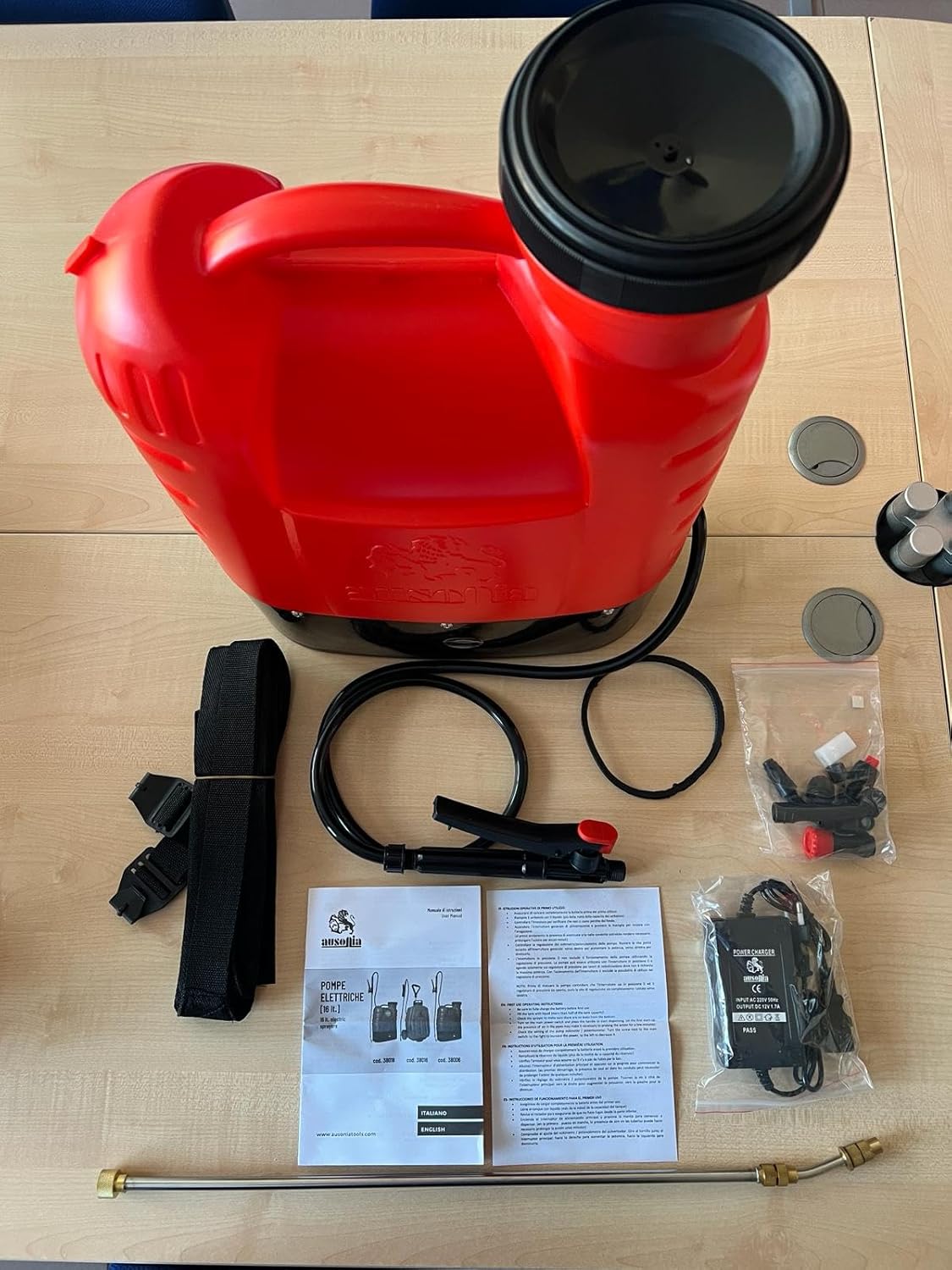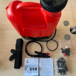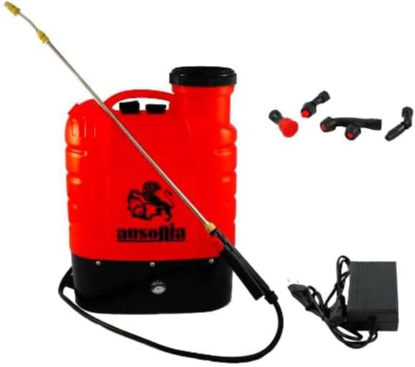 - ELEKTRISCHE RÜCKENSPRITZE FÜR 16 LITER, beidhändig benutzbar, kann von Links- und Rechtshändern bedient werden – Steuerung mit Batterieanzeige und Druckregler – Druck 1,6 – 3,2 bar. Batterie 12 V / 10 Ah – Batteriedauer circa 8 Stunden – Gewicht 6,3 kg