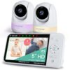 Babysense Babyphone HD 5 Zoll mit 2 Kameras, Video Babyphone ohne WLAN, Nachtlicht, Wiegenlieder, 300m Reichweite, Zwei-Wege-Audio, 4-facher Zoom, 4000mAh Akku