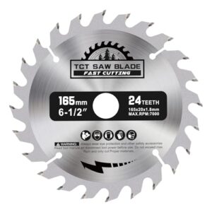 • TECHNISCHE DATEN – Kreissägeblatt passend für Handkreissägen; 165mm Durchmesser / 20mm Bohrung / 2,3mm Schnittbreite / 24 Zähne; Ein Reduzier-Ring mit einem Durchmesser von 16 mm ist enthalten, der eine flexible Anpassung ermöglicht