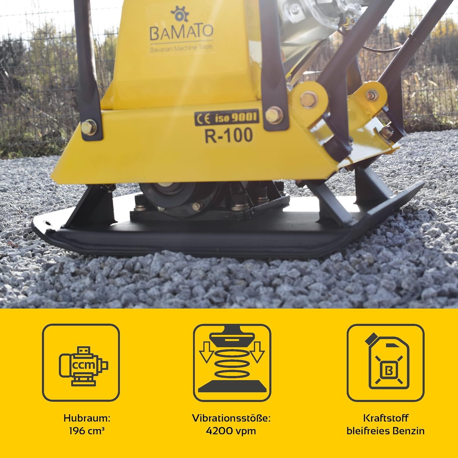 H2: Produktbeschreibung für BAMATO Rüttelplatte R-100 | mit Gummimatte