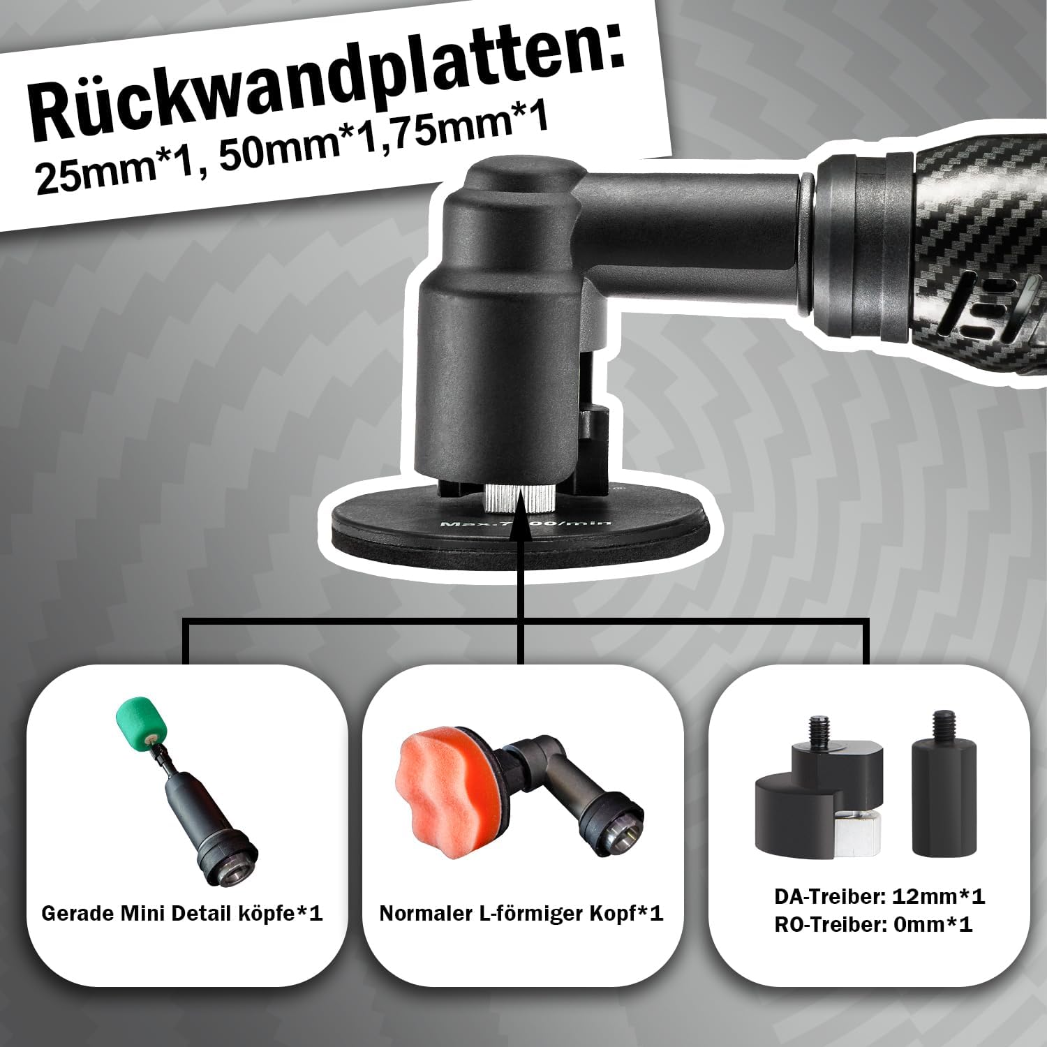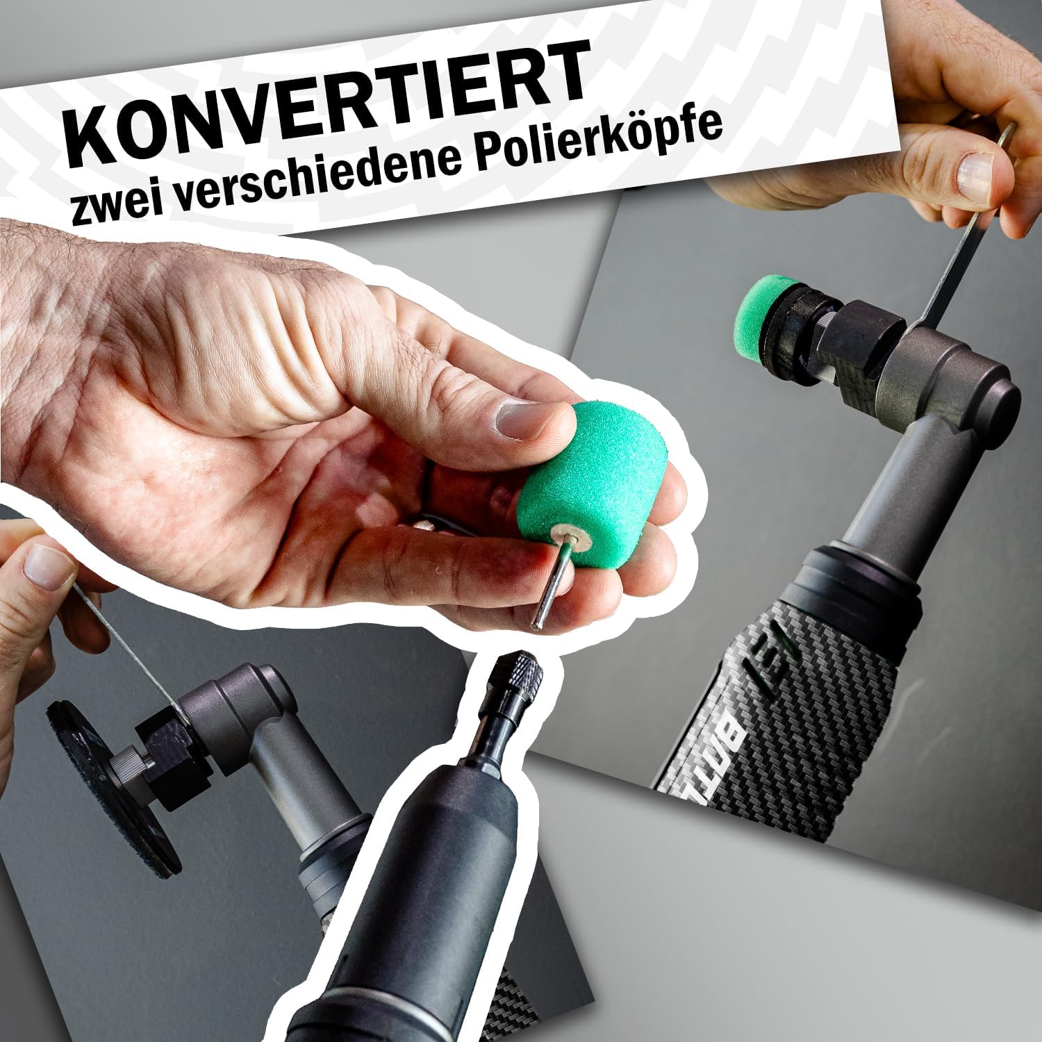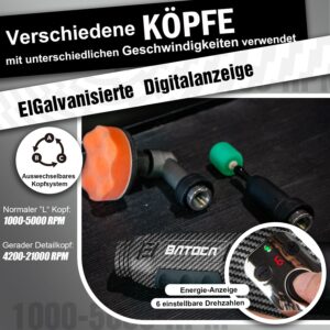 - 【Kompakt praktisch,Vielseitiger Drehzahlbereich】Dieses kompakte Lackpflege-Werkzeug ist leicht, handlich und bietet zwei unterschiedliche Drehzahlbereiche. Der L-förmige Polierkopf arbeitet in einem Bereich von 1.000 bis 5.000 U/min und ermöglicht so das effiziente und makellose Polieren kleinerer Flächen sowie von Karosseriekonturen; der gerade ausgeführte Mini-Polierkopf deckt indes einen Drehzahlbereich von 4.200 bis 21.000 U/min ab. Diese umfassende Drehzahlkonfiguration ist darauf ausgelegt, all Ihre professionellen Anforderungen an die detaillierte Lackaufbereitung zu erfüllen!