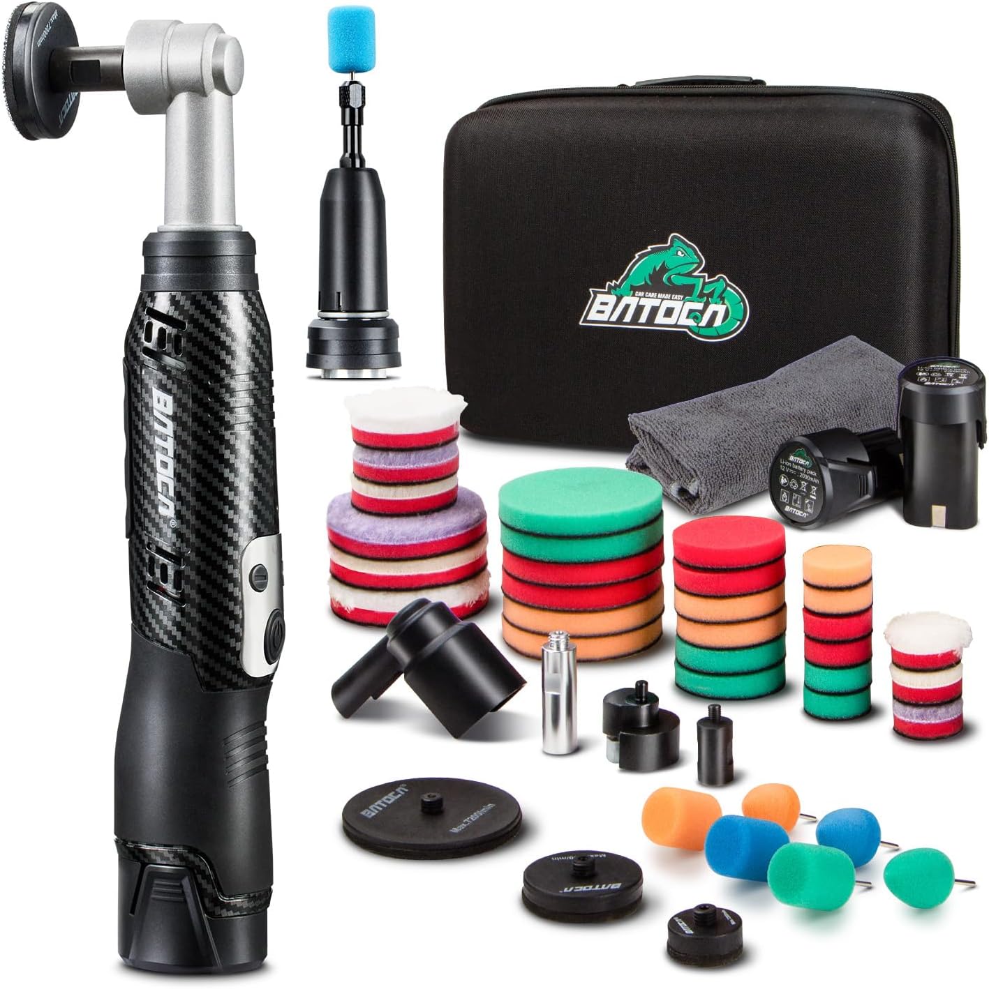 - 【Universal-Akku】BATOCA S6 Akku-Poliermaschine verfügt über 2 x 12V 2.0Ah Lithium-Batterien mit einer Laufzeit von bis zu 30 Minuten ohne Belastung. So können Sie Ihr Autopolitur-Erlebnis mit 2 Batterien bereichern, um eine ununterbrochene Detailpolitur zu gewährleisten. Und die Batterien sind kompatibel mit BATOCA S6, S3 und S5!