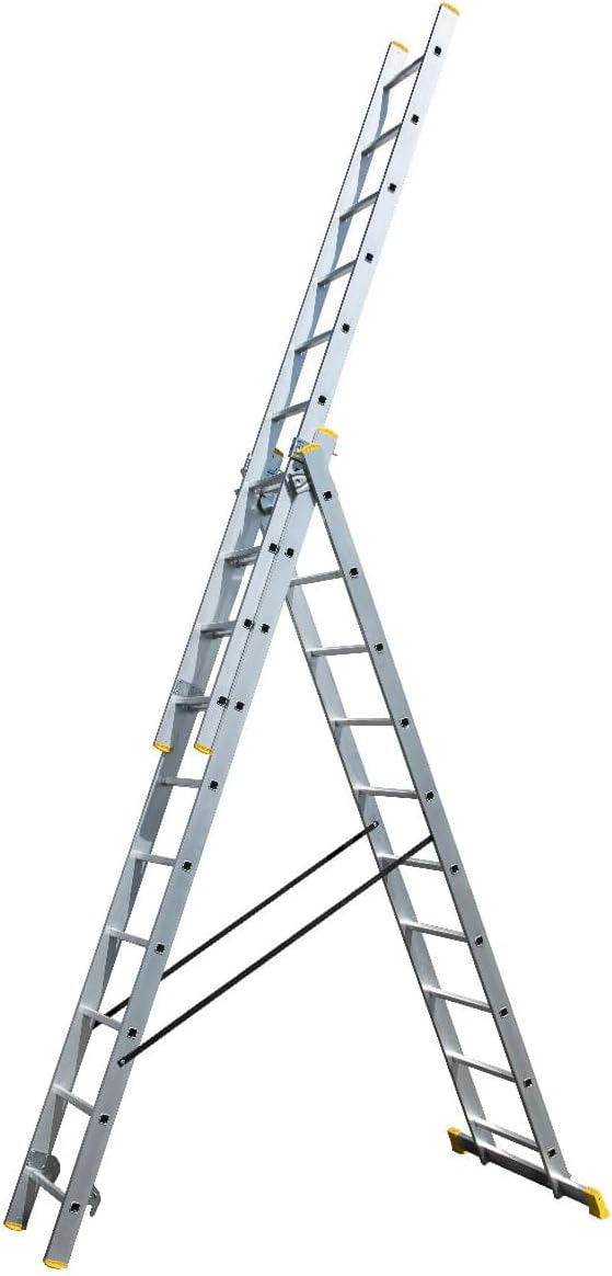 Die Leiter verfügt insgesamt über 30 Stufen. Diese verteilen sich gleichmäßig auf drei Elemente mit jeweils 10 Sprossen, wodurch sie vielseitig einsetzbar ist.