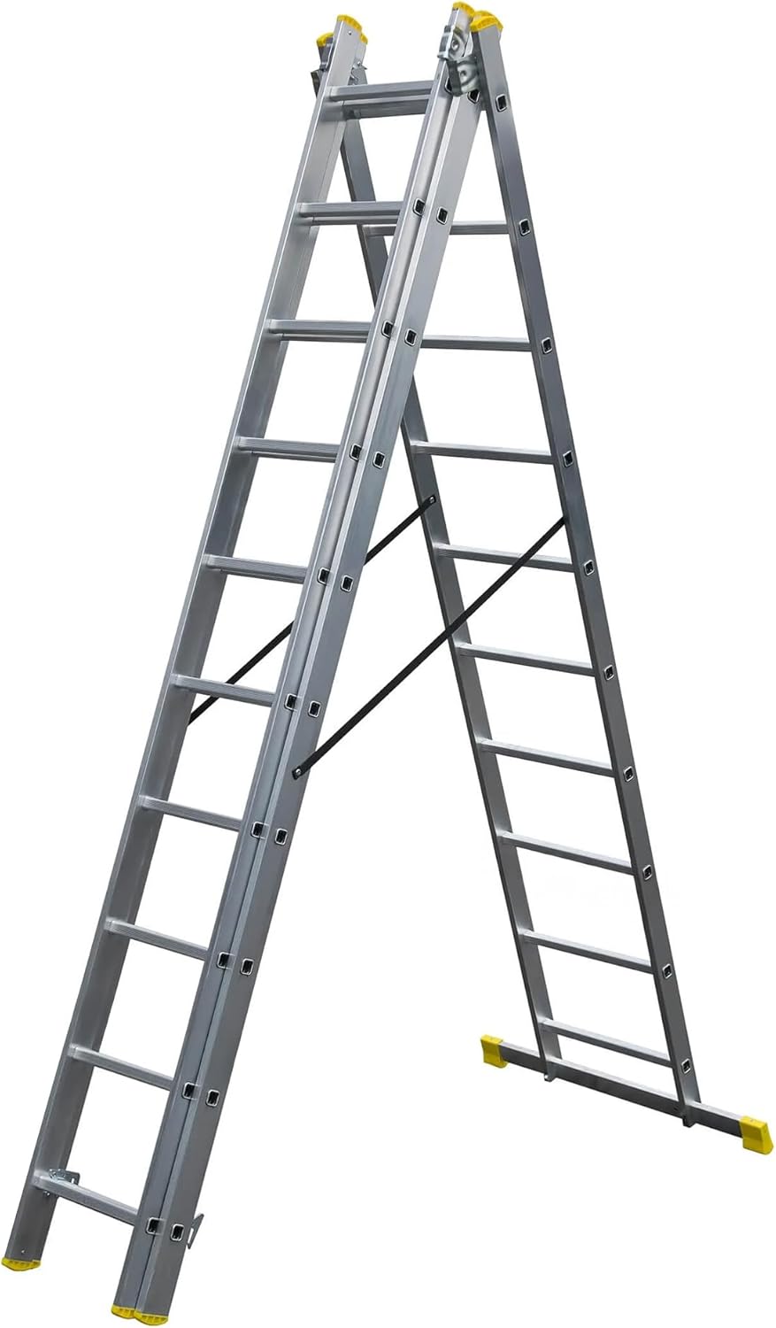 - Maximale Reichweite: Durch die 3×10 Sprossen erreichst du eine Arbeitshöhe von 6,49 m, was ideal für Fassadenarbeiten oder den Zugriff auf hohe Dachrinnen ist.