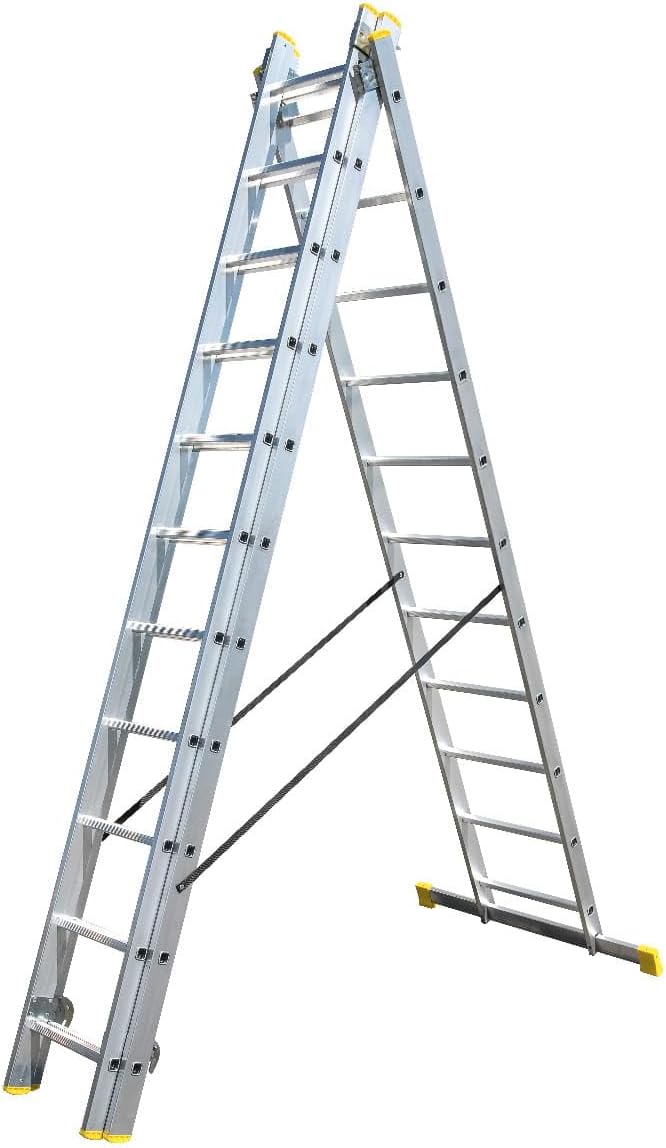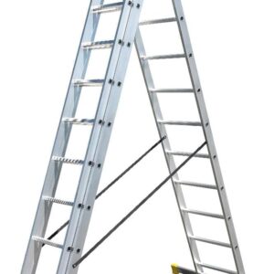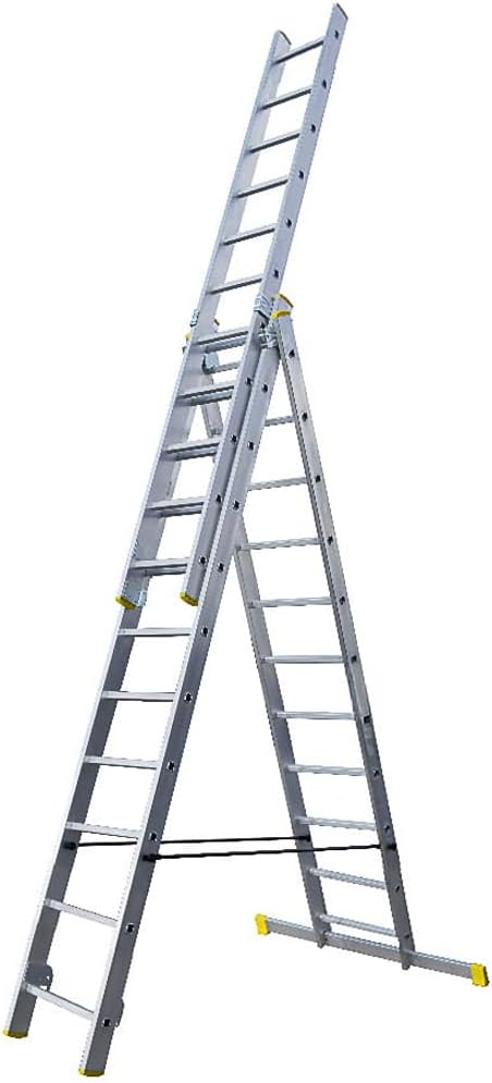 Die Mehrzweckleiter ist mit insgesamt 33 Stufen ausgestattet, welche sich gleichmäßig auf die drei Elemente mit jeweils 11 Sprossen verteilen. Diese Konstruktion bietet Ihnen eine hohe Flexibilität bei verschiedenen Arbeitshöhen im Bau- und Renovierungsbereich.