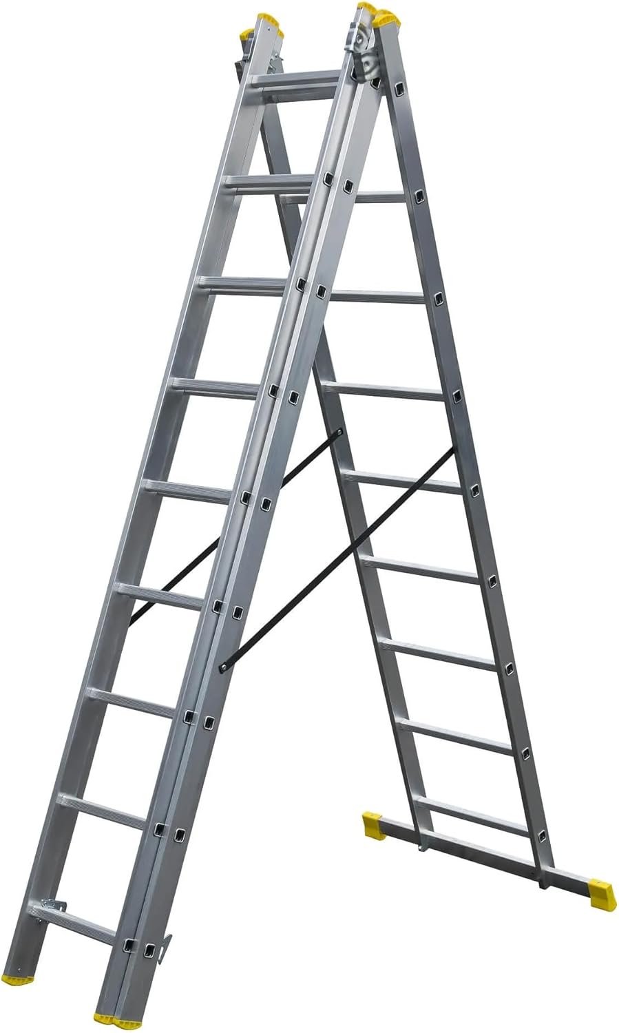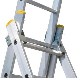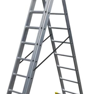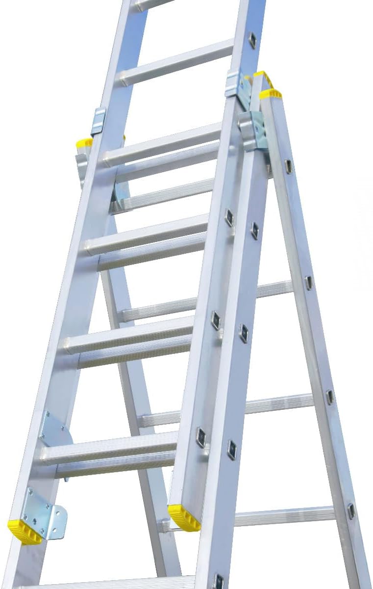 Die Mehrzweckleiter verfügt über insgesamt 27 Stufen. Diese verteilen sich gleichmäßig auf die drei Elemente, wobei jedes Element mit 9 Sprossen ausgestattet ist.