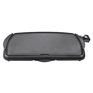 • ELEKTROGRILLPLATTE: Diese leistungsstarke Grillplatte verfügt über ein 1500-Watt-Heizsystem, Cool-Touch-Griffe und einen Boden mit integrierter Kante und Rücklaufsperre zum einfachen Wenden von Pfannkuchen. Der abnehmbare Temperaturfühler mit benutzerfreundlichem Drehregler ermöglicht eine präzise Temperaturregelung.