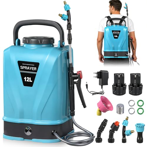 Bellanny Drucksprüher 12 Liter, Gartenspritze Pumpsprüher Akku Drucksprühgerät | Gartenspinklergerät Pflanzensprüher mit 5 Düse - 12V Elektrischer Sprühflasche für Garten,Pflanzen,Unkrautspritze,Auto