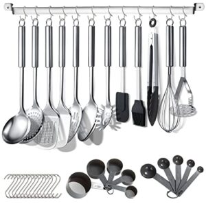 Berglander Küchenutensilien Set 38 teilig, Edelstahl Kochgeschirr Set, Küchenhelfer Kochgeschirr mit Utensilienhalter und Haken zum Aufhängen Spülmaschinenfest