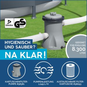 - Komplett-Set: Die Filterpumpe und entsprechende Kartusche sind direkt im Lieferumfang enthalten, was einen sofortigen Start ermöglicht.