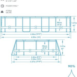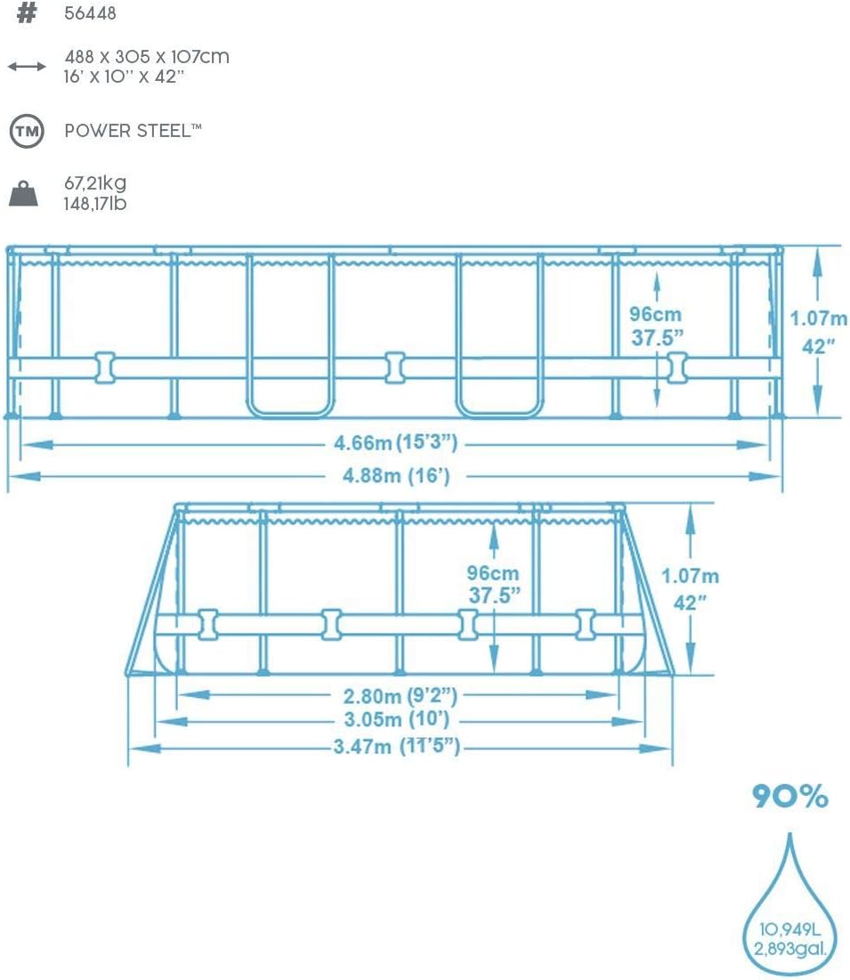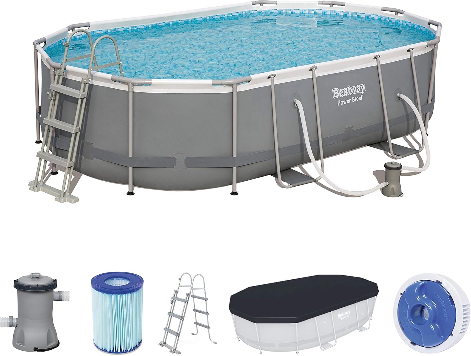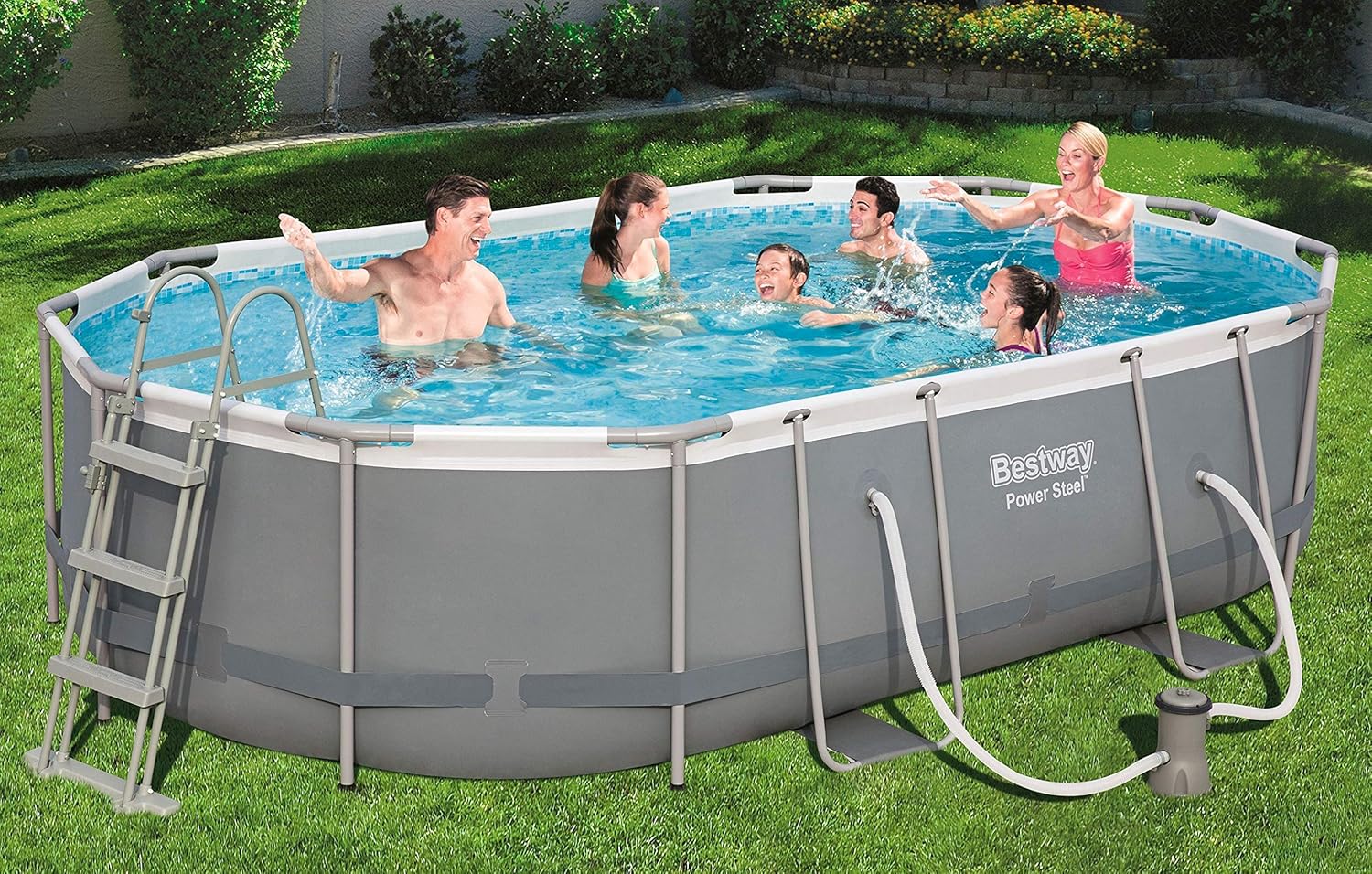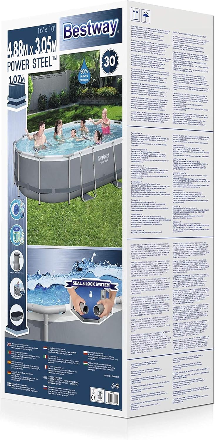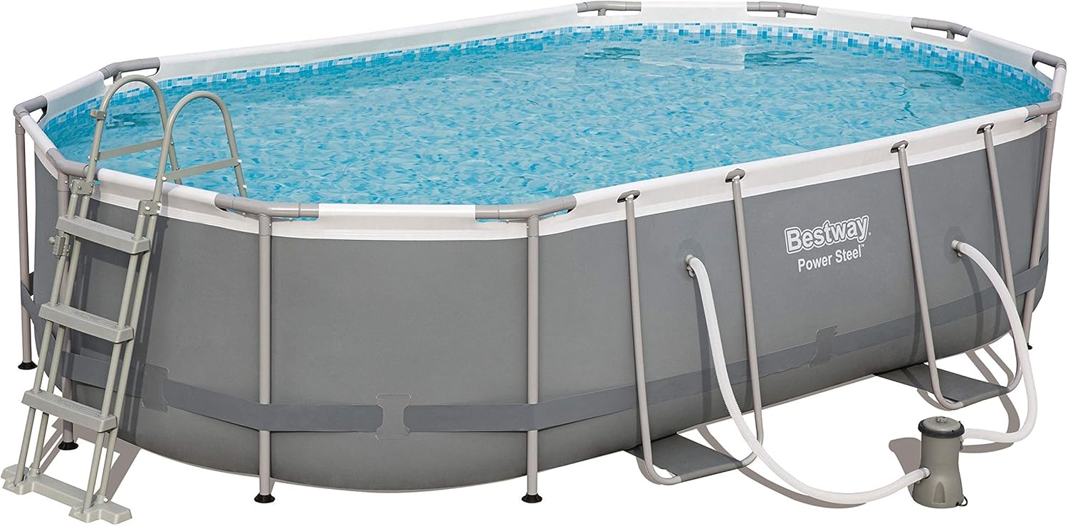 Dieser Bestway Power Steel Oval Pool besitzt die spezifischen Außenmaße von 488 x 305 x 107 cm. Diese Größe bietet ausreichend Platz für Familien und sorgt für ein angenehmes Badeerlebnis im eigenen Garten. Die Abmessungen machen ihn zu einer idealen Wahl für mittelgroße Stellflächen.